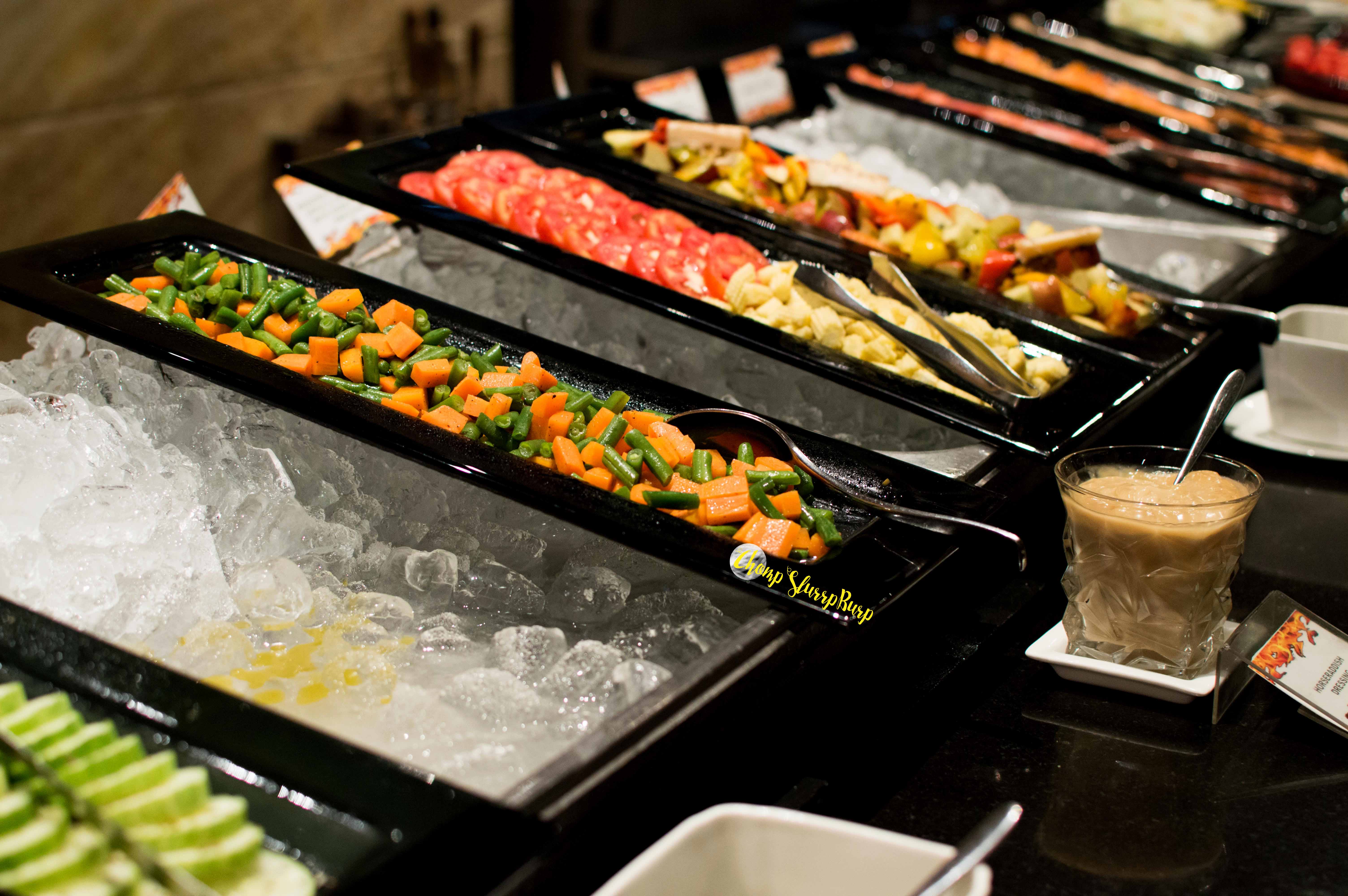 They have an awesome salad bar with dragon fruit, water melon, cheese and cold cuts. Started with their fresh bread basket, the soup sticks were a piece of art,teamed with their crushed olive dip, it was so lipsmacking.