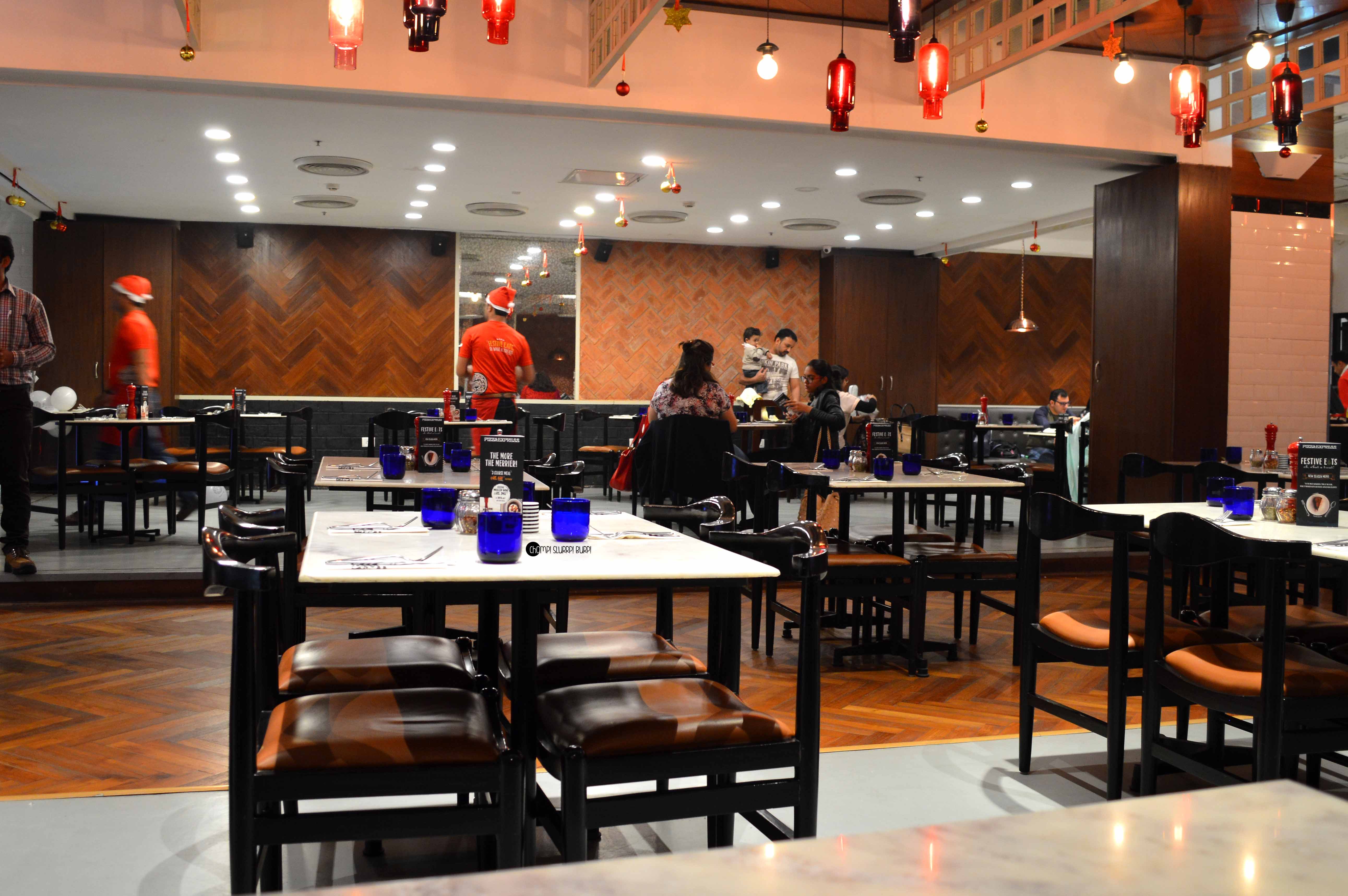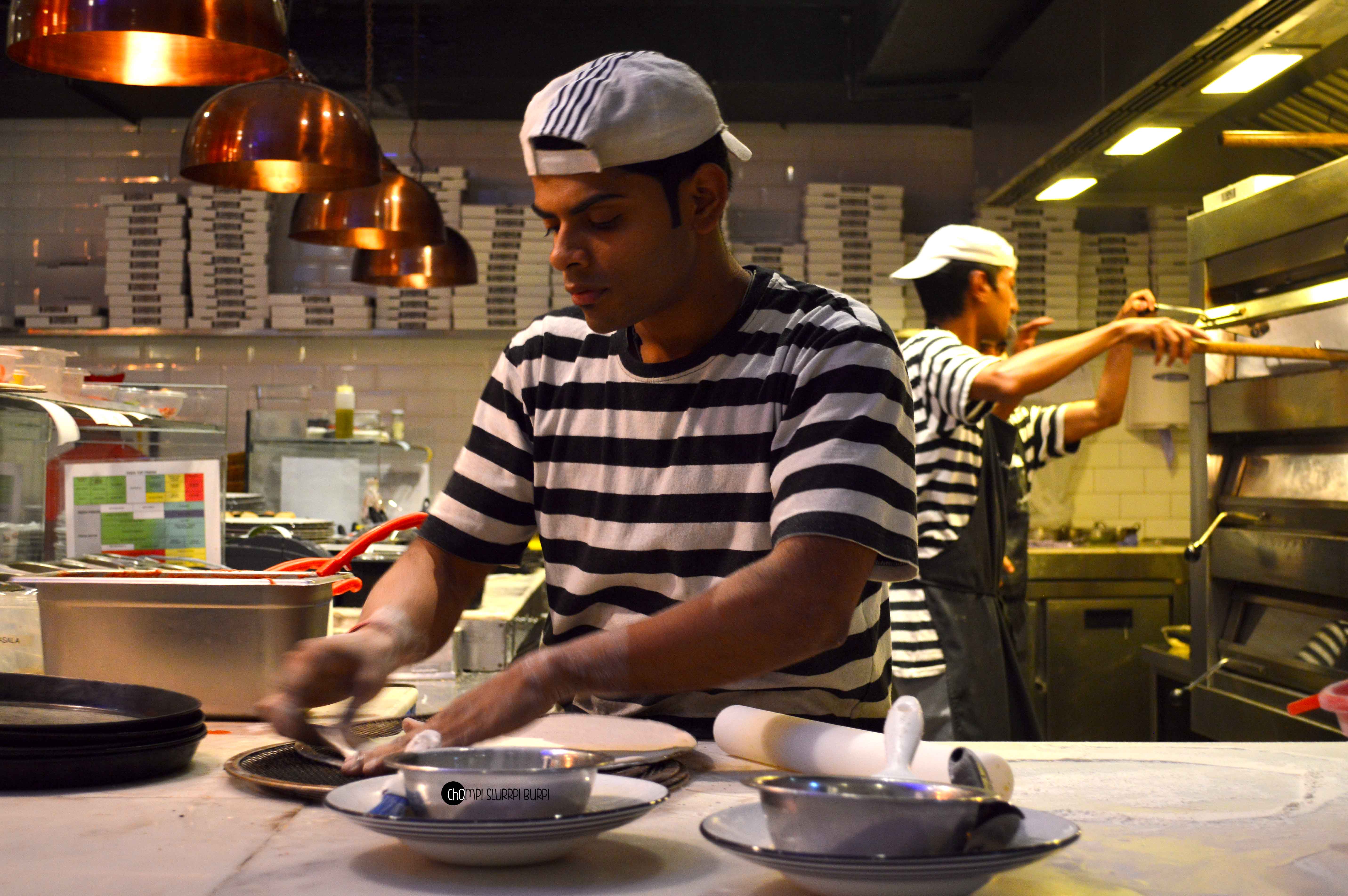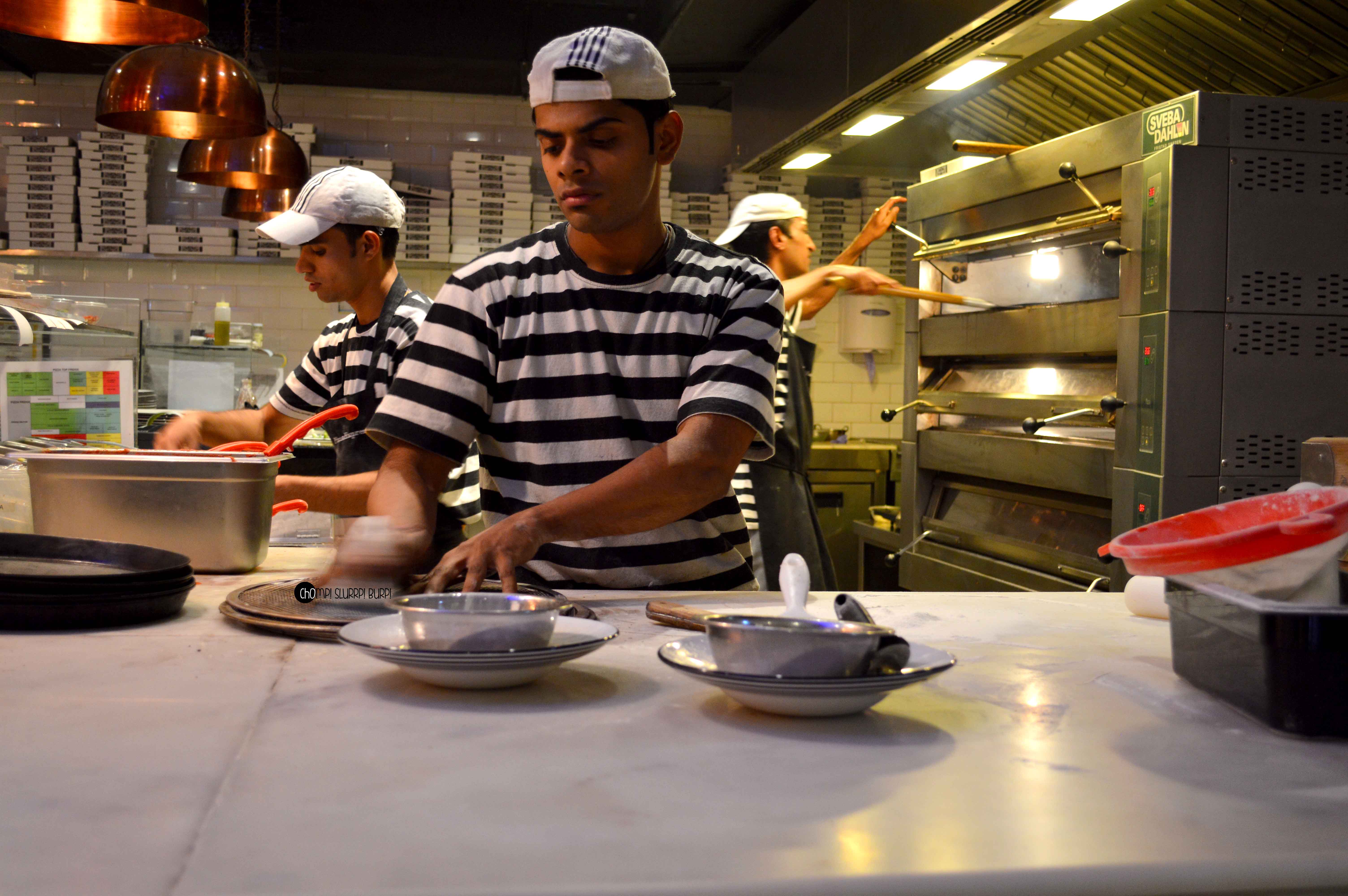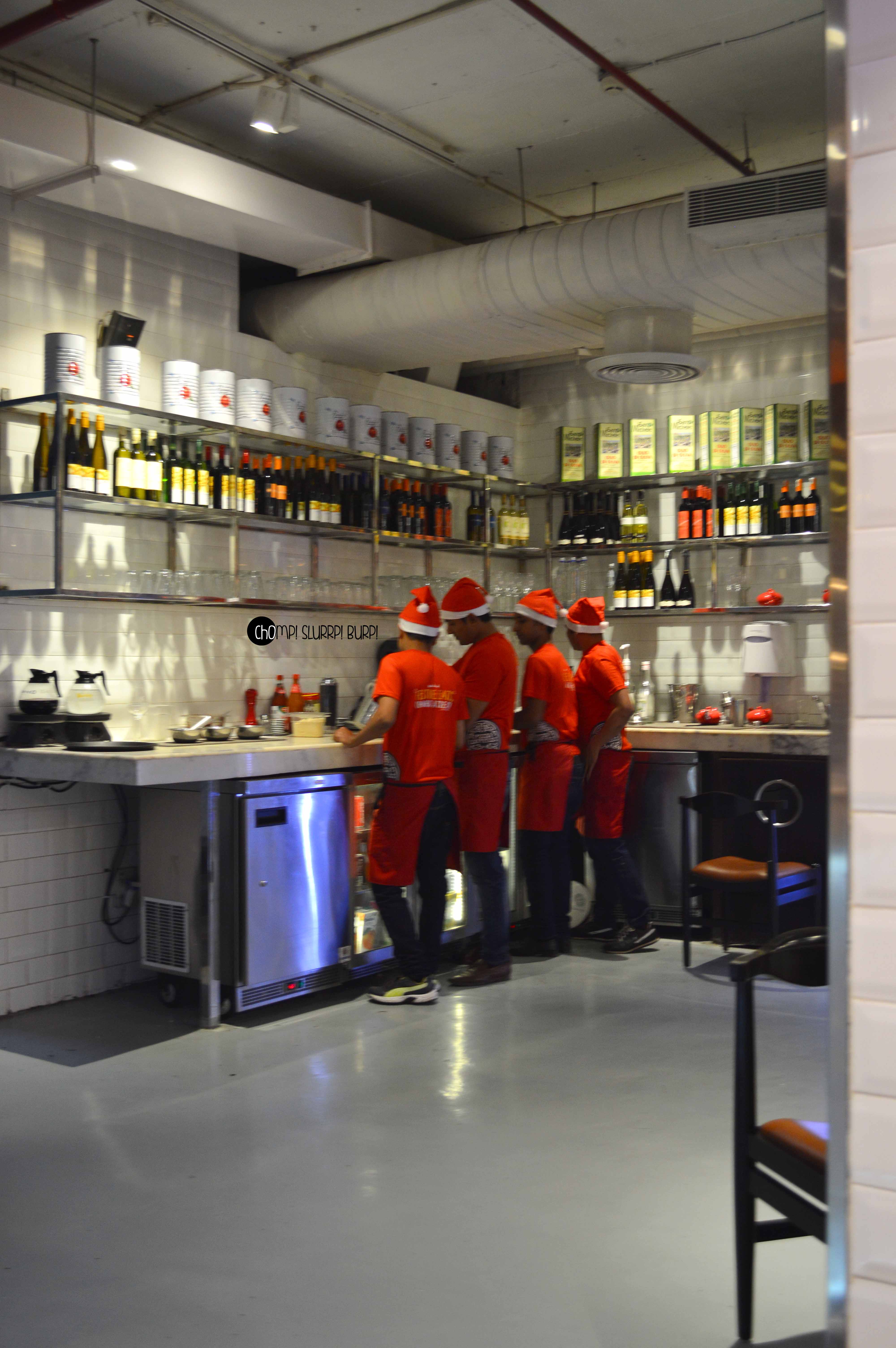 PizzaExpress has recently come up with a gorgeous Winter Menu and the excitement cannot be contained. They have added a whole new menu and you can either go for their course meal with mulled wine or order separates. The restaurant cloaked in Christmas colors and lights in the most minimalist way possible with even the Christmas tree a squibble of lines. Well lit, cosy booths and a wide open kitchen.