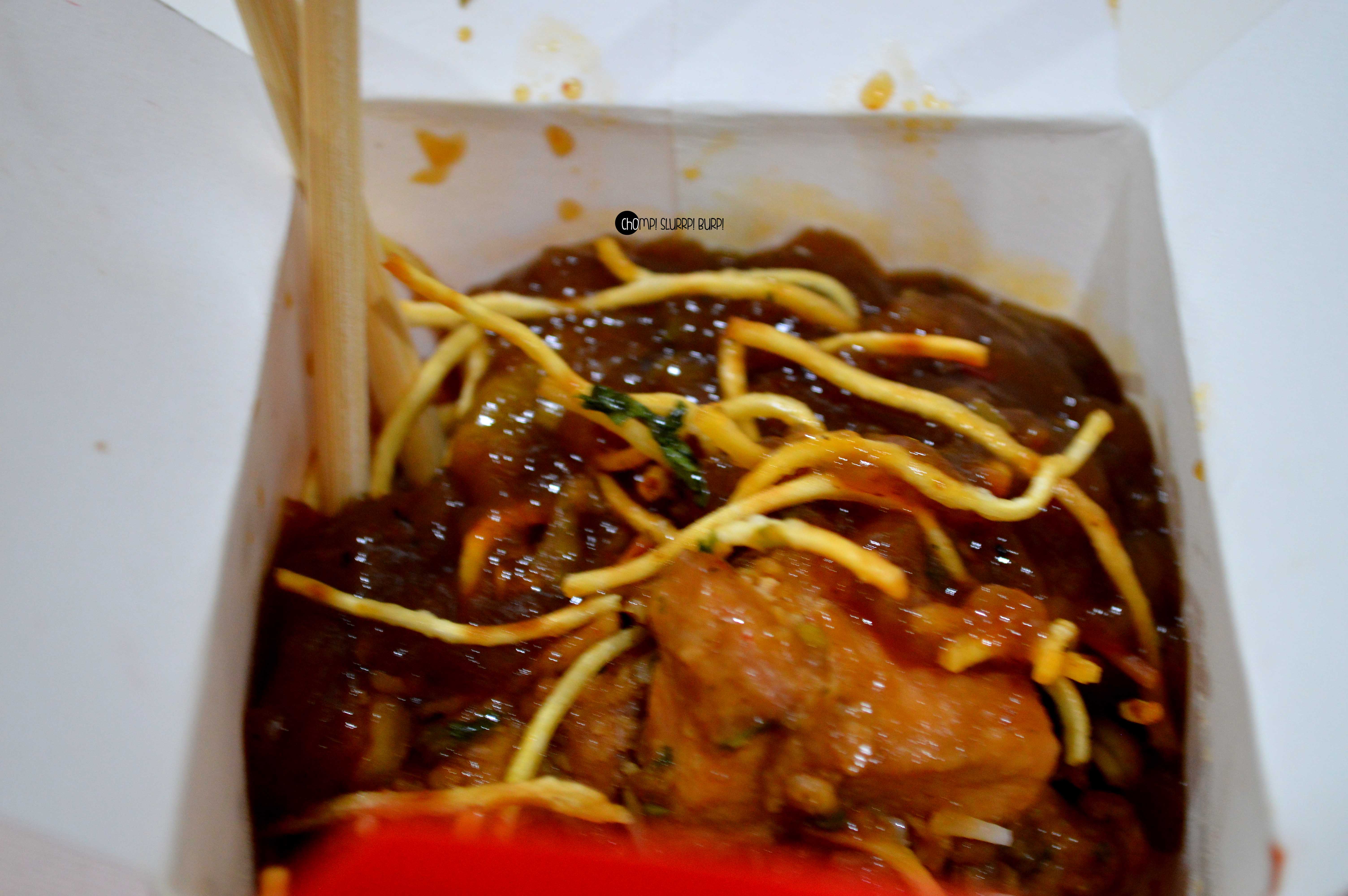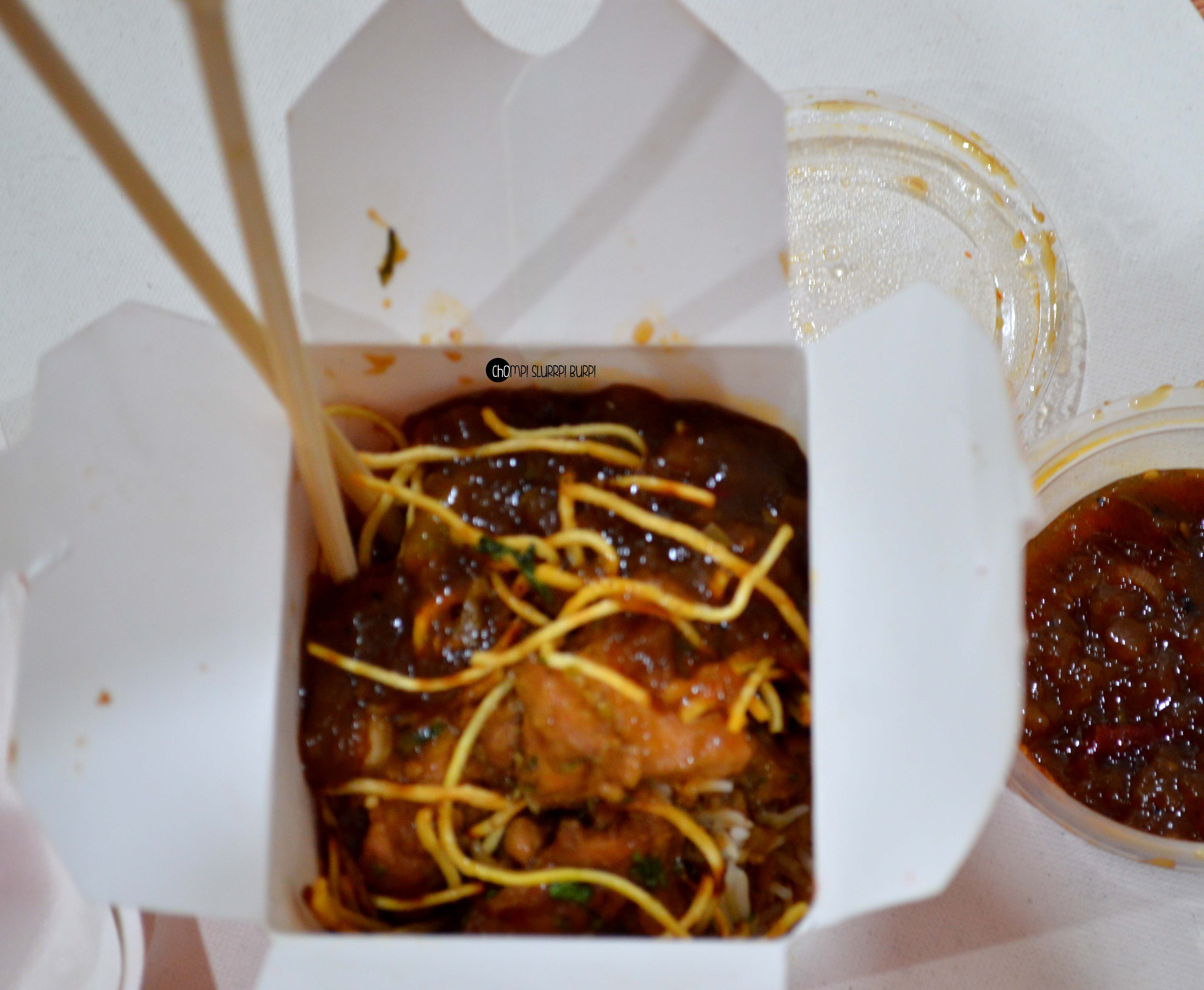 The Chicken China box with rice, succulent chicken chunks, topped with fried noodles and gravy to pout in afterwards. The flavors were not so to say authentic Asian but well suited to our desi taste buds. The chicken was extremely fresh and most importantly, the quantity of chicken, gravy and rice was very well balanced.