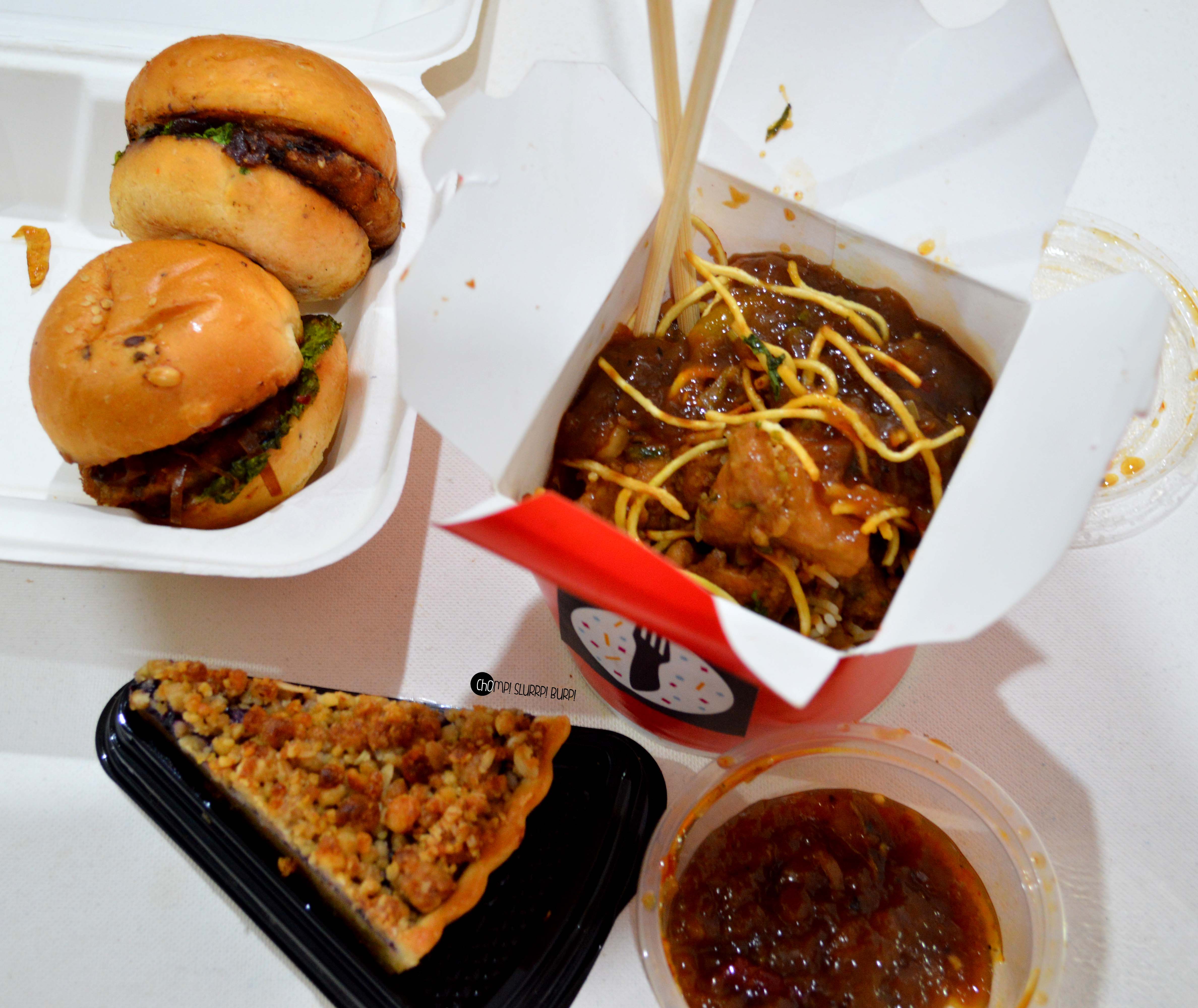 Foodport brings to you a variety of healthy, gourmet options with eat in boxes, cute packaging and affordable prices. Like their name suggests, its your one stop port for amazing flavors and all kinds of hunger pangs. Oh and their menu changes everyday with delectable additions. I sampled some of their delicacies from varying palates – burger sliders, China box and Kebab platter complete with a slice of a luscious blueberry pie.